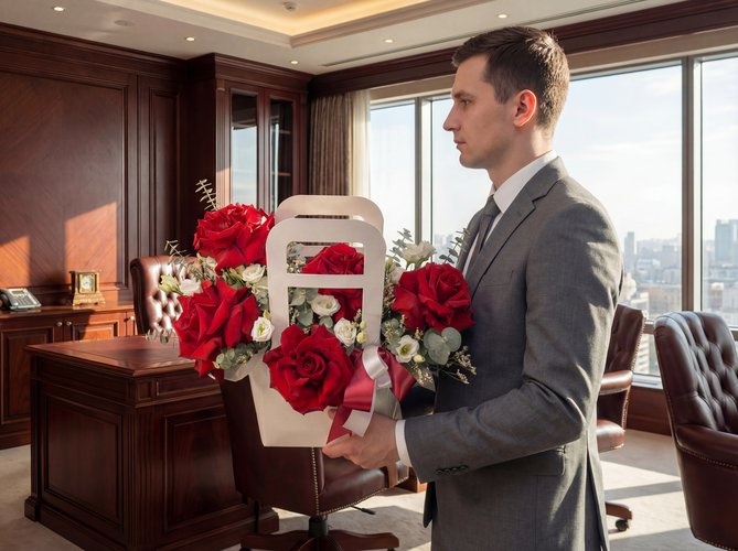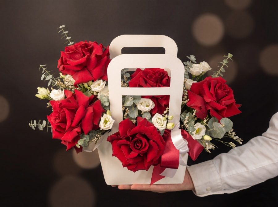 2026г. Композиция из цветов для любимой в сумочке. Состав: Французская роза, эустома и эвкалипт. Цвет: красный. Размер (40х20х30). Композиция из красных роз с зеленью в дизайнерской сумочке — огненный подарок на любой праздник, девушке, маме, бизнесвумен, жене. Идеально подходит для романтических подарков и торжественных мероприятий — юбилеев, свадеб, праздников, годовщин и поздравлений. Стиль: современная элегантная композиция в минималистической коробке с акцентом на крупные розы и четкость форм (фэшн). Эффектный визуальный акцент в интерьере: дома, в офисе или на мероприятии. Практичный формат: готов к вручению, комплектуется декоративной лентой и улыбкой в подарок. Совет: избегайте прямых солнечных лучей и отопительных приборов.