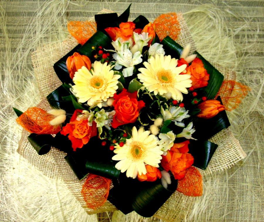 Букет круглый. В оранжево-кремовых тонах. Евро букет