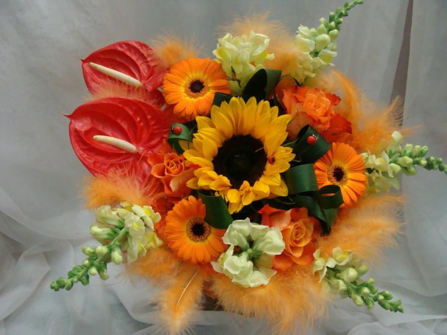 2012г. Букет круглый. В оранжево-красных тонах. Сборный букет