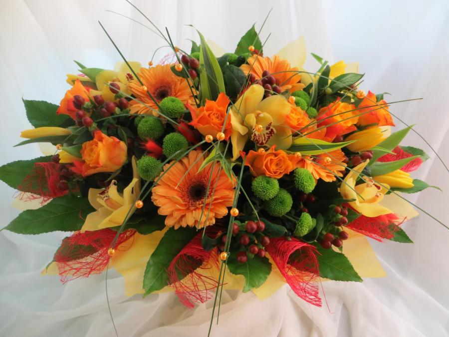 2013г. Букет круглый. В оранжево-желтых тонах. Сборный букет
