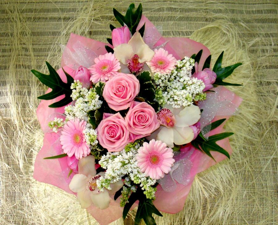 Букет круглый. В розово-белых тонах. Сборный букет