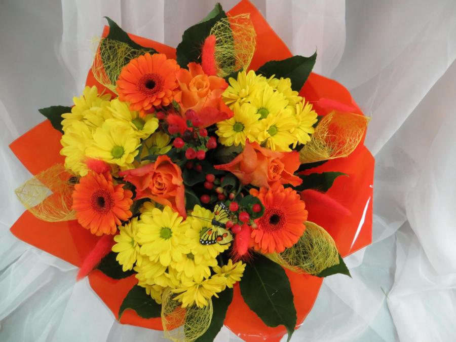 2013г. Букет круглый. В оранжево-желтых тонах. Сборный букет