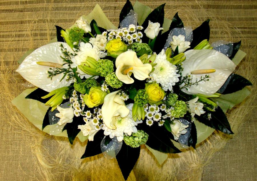Букет овальный. В бело-зеленых тонах. Евро букет