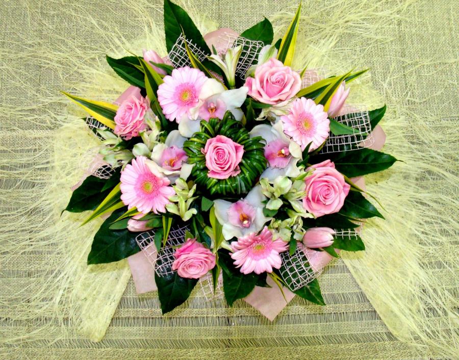 2010 г. Букет из живых цветов круглый. В розовых тонах