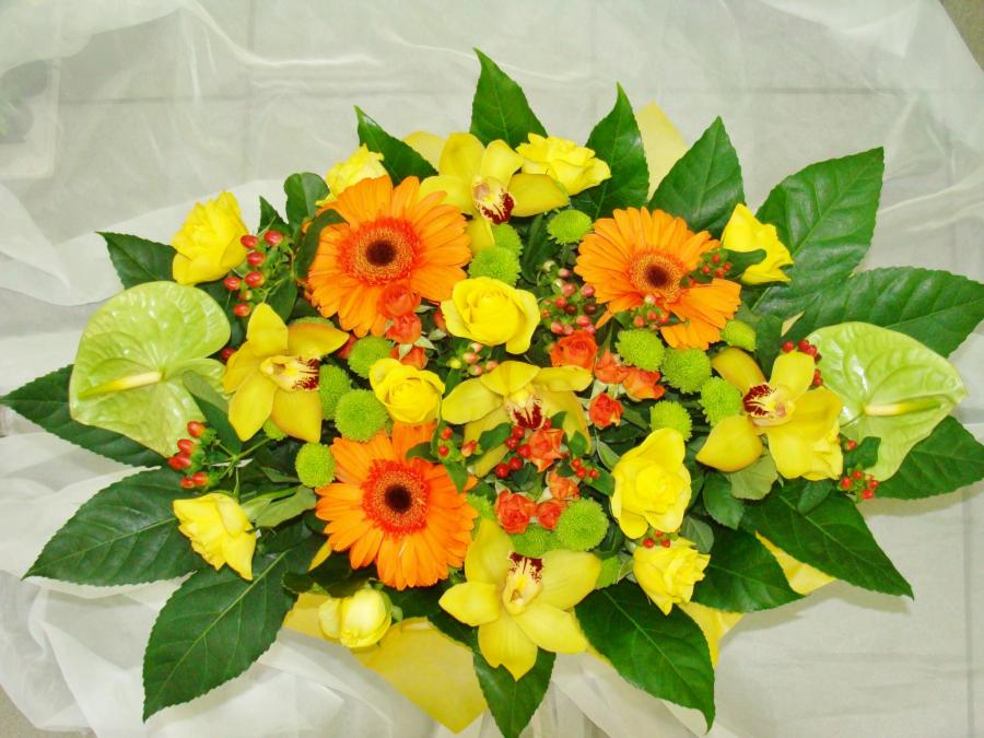 Букет круглый. В оранжево-желтых тонах. Сборный букет