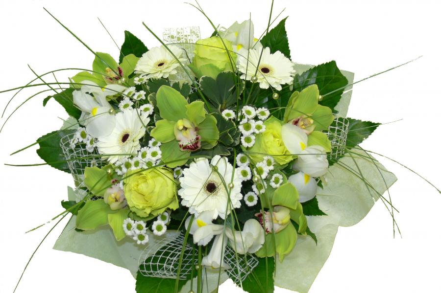 2011г. Букет из живых цветов круглый. В зелено-белых тонах. Размер (40х40х55)