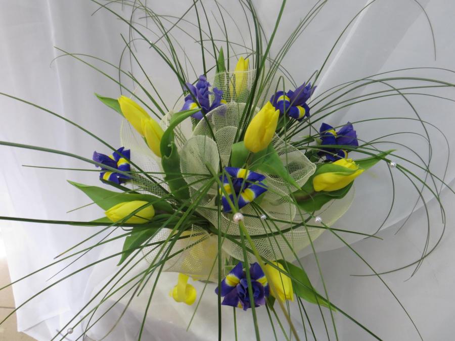 2013г. Букет цветов девочки. Ирисы тюльпаны.