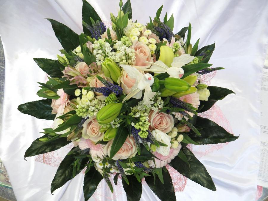 2014г. Букет на день рождения. Состав: Лилия, сирень, роза, эустома, гербера, хризантема. Цвет: Бело-кремовый. Размер (35х35х50) нц 2015