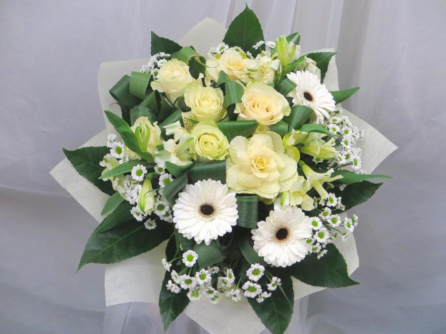 2014г. Букет на день рождения из живых цветов. Состав: Гербера, роза, брасика. Цвет: Бело-салатовый. Размер (40х40х50). Вес 2.0кг нц 2015