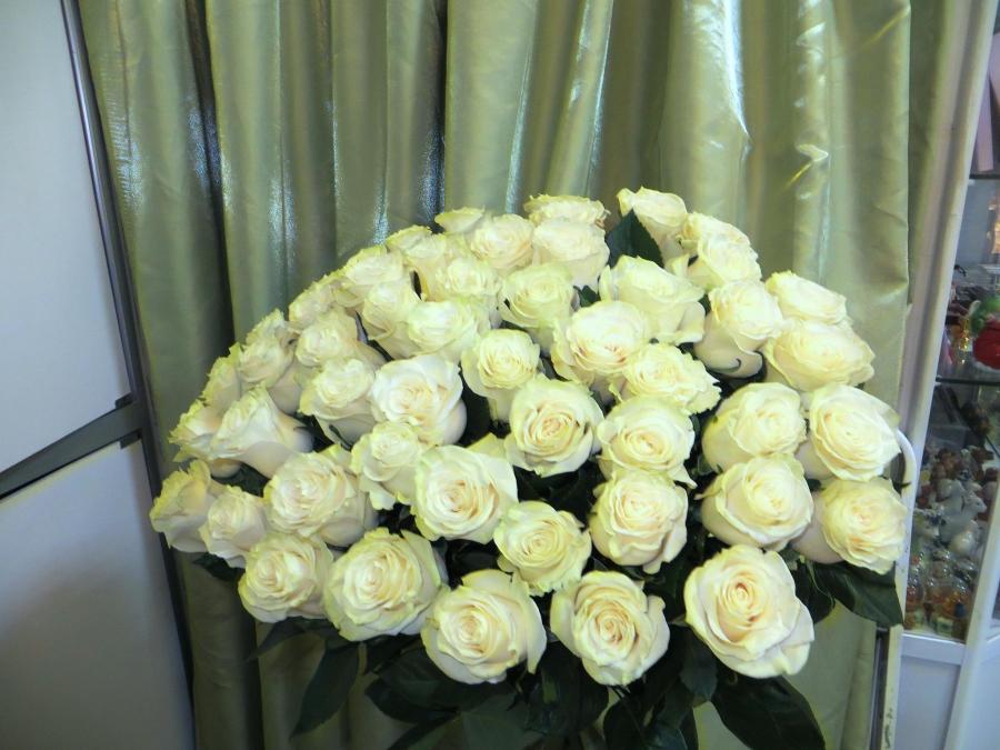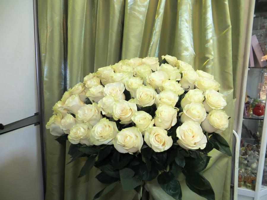 2019г. Букет дорогой жене на день рождения. Состав: 51 роза. Сорт мондиаль. Цвет: Белый. Размер (60х60х65). Вес-5.0 Кг.