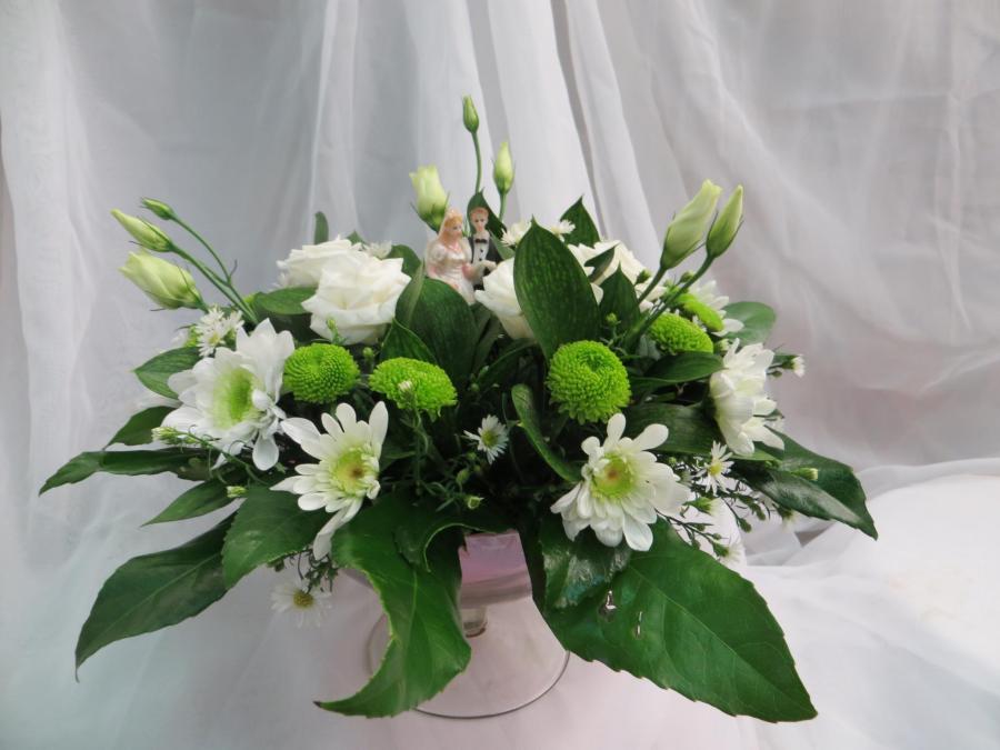 2012г. Композиция из живых цветов на свадьбу в стеклянном бокале.