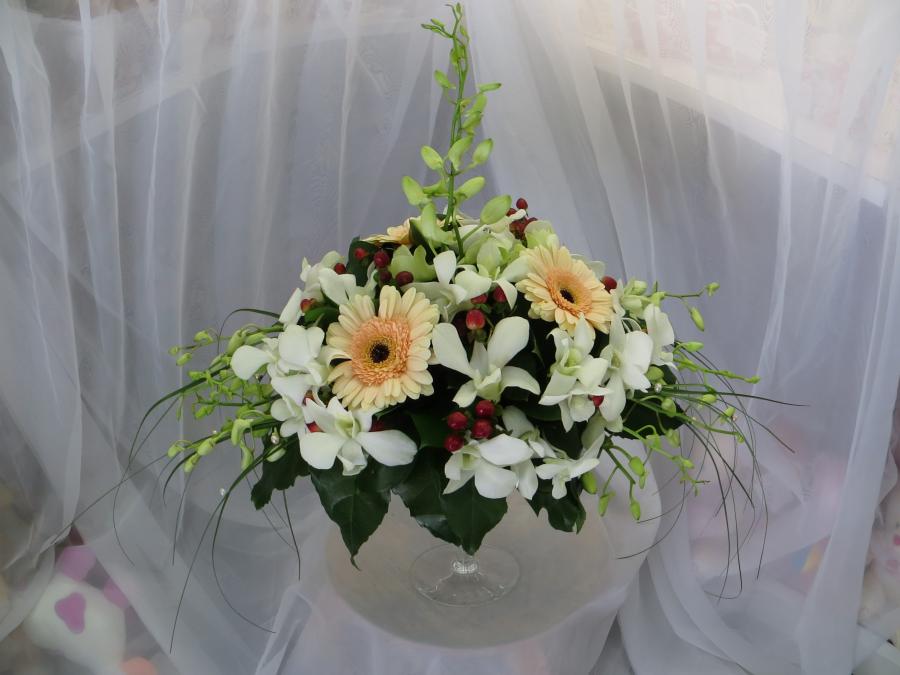 2012г. Композиция из живых цветов. Состав: Дендробиум гербера гиперикум. нц 16
