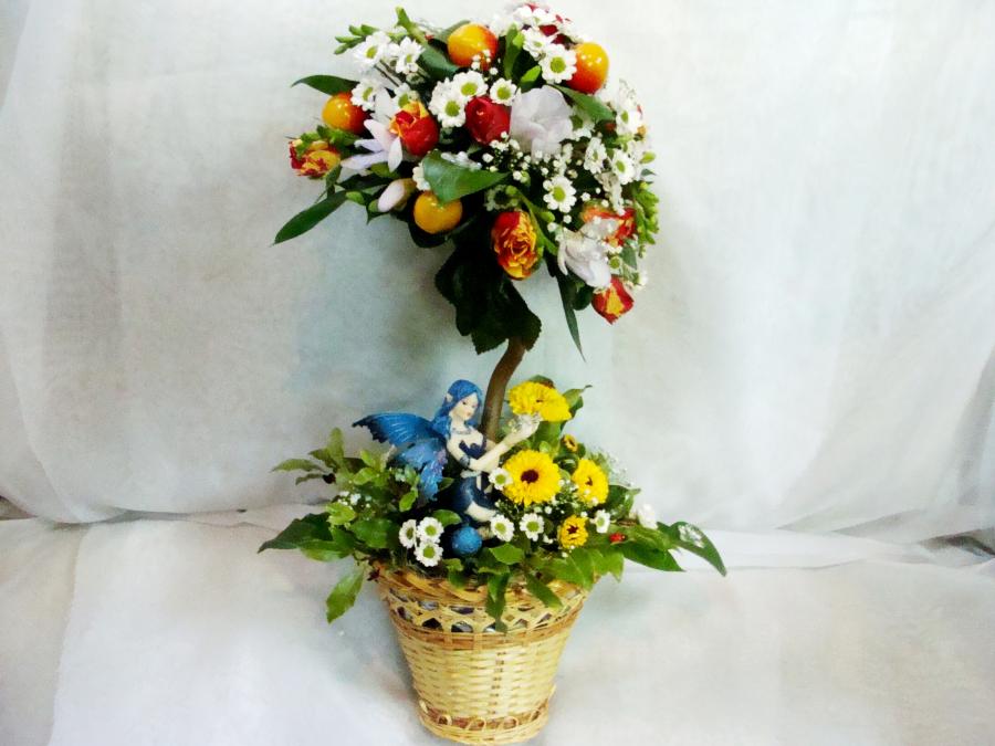 2011г. Композиция из живых цветов. Форма дерева. Цвет: желтый с красным.
