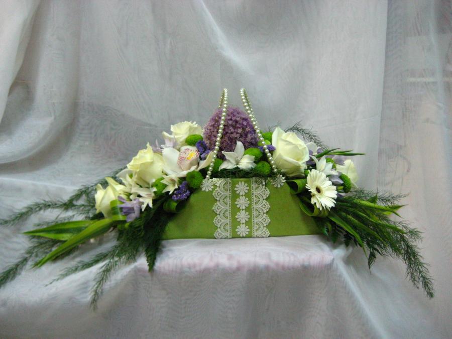 2012г. Композиция из живых цветов для девочки. Роза, алиум, гербера