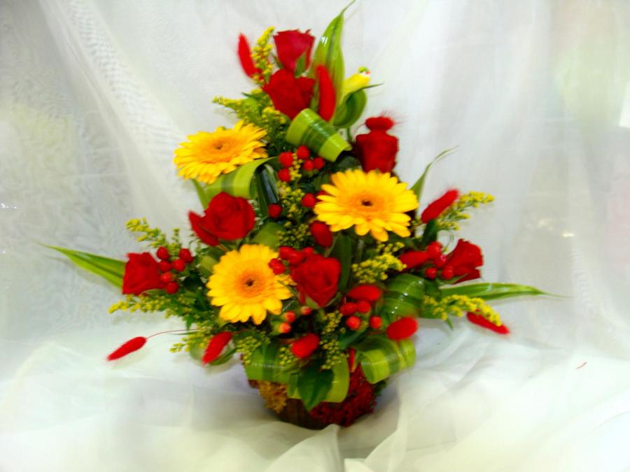 2010г. Композиция из живых цветов. Цвет: Красный с желтым