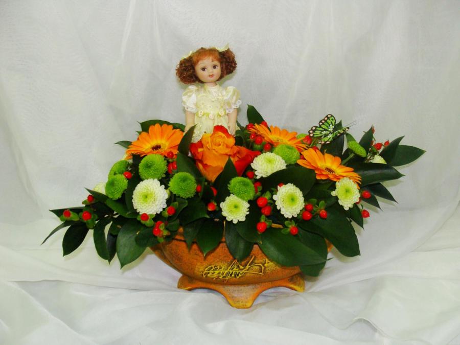 2010г. Композиция с живыми цветами для девушки