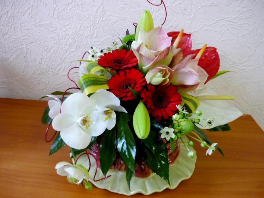 2010г. Композиция из живых цветов. Цвет: Красно-розовый с белым