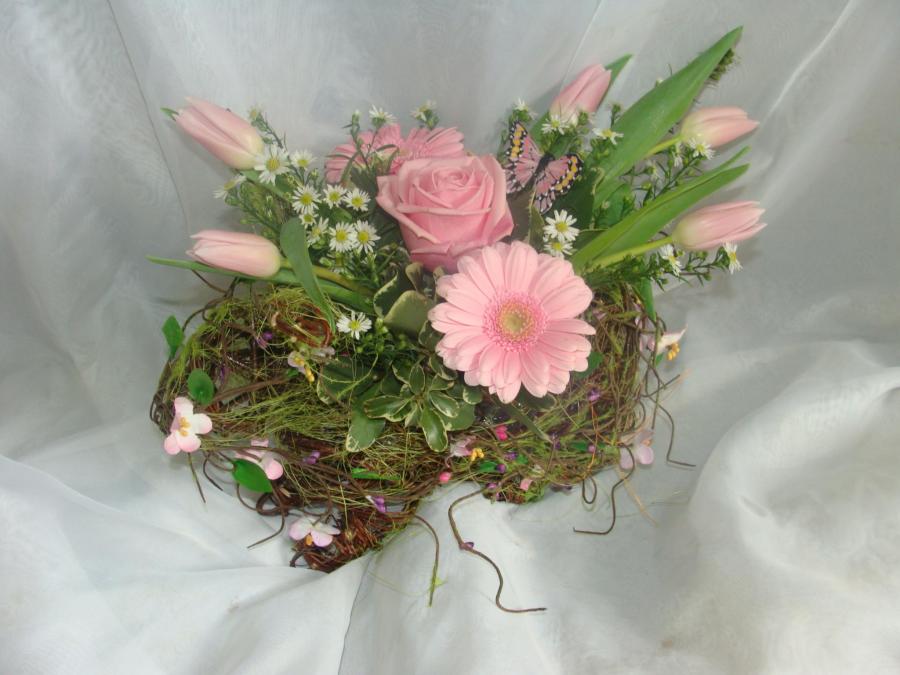 2012г. Композиция из живых цветов. На день рождения. Состав: розы герберы тюльпаны нц 2015