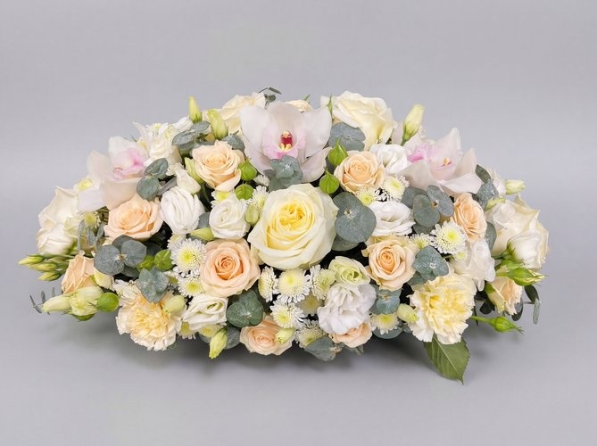 22026г. Цветы на ресепшн гостиницы, отеля, салона красоты, института эстетической медицины, для ресепшн офиса и зала приема посетителей, для торжественных мероприятий. Настольная композиция - живая эстетика, которая работает на ваш имидж, задаёт тон и настроение, подчёркивает статус компании. Состав: Орхидея, роза, роза кустовая, эустома, гвоздика, эвкалипт. Цвет: Белый кремовый розовый с зеленым. Размер (45х25х18)