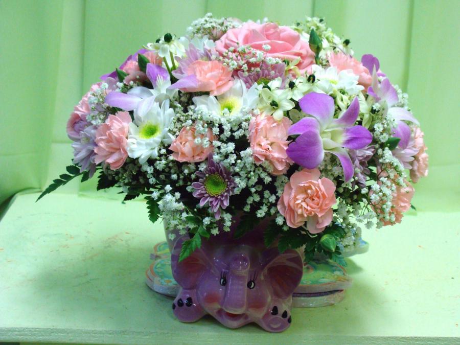 2010г. С живыми цветами для новорожденой. Цвет: Розово-белый. Размер (55х50х35) нц 16